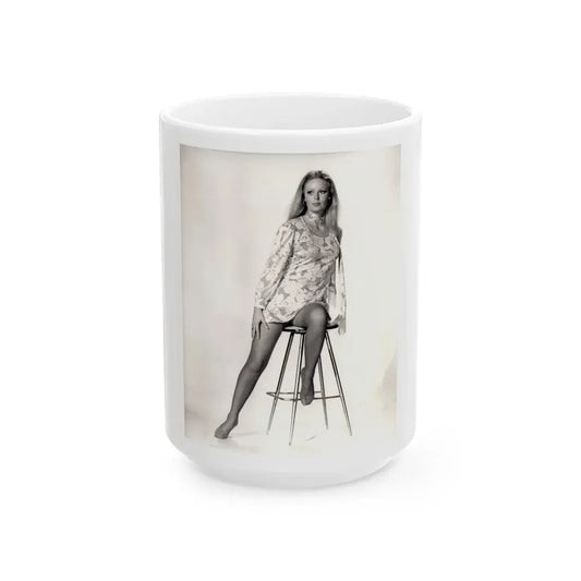 Veronica Carlson #10 - 8x10 B&W Glamour Full Body Dress & Stockings Shot #021 (Vintage Female Icon) White Coffee Mug