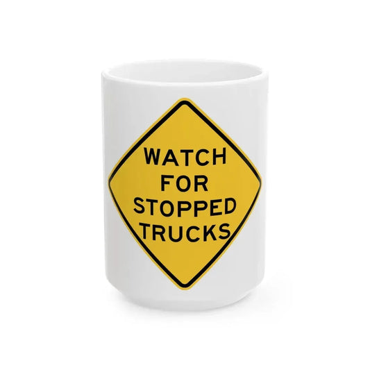 WATCH FOR STOPPED TRUCKS MUTCD-IL W5-I100 (Illinois) (Road Sign) White Coffee Mug