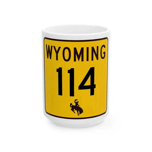 WY-114 (Wyoming) (Road Sign) White Coffee Mug