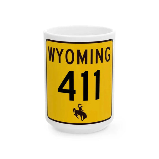 WY-411 (Wyoming) (Road Sign) White Coffee Mug