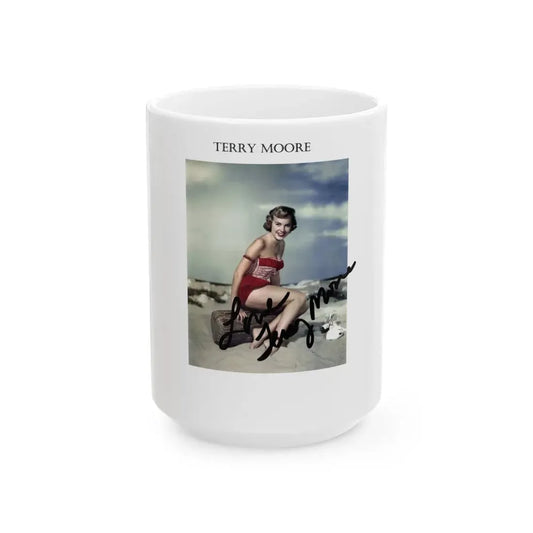 Terry Moore #546 - 3.5x5.5 1-Piece Color Barefoot Swimsuit Cheesecake Photo (Vintage Female Icon) White Coffee Mug