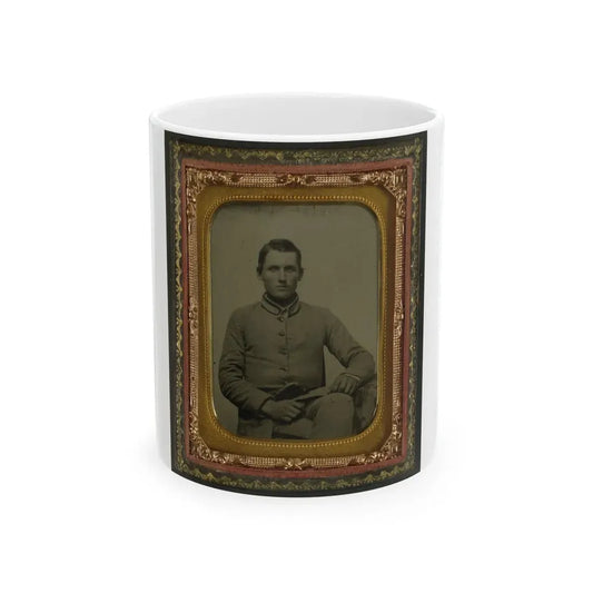 William Jenkins, North Carolina Soldier, In Artillery Uniform, With Percussion Musket Converted From A Flintlock Musket (U.S. Civil War) White Coffee Mug