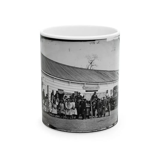 Washington, D.C. Workmen In Front Of The Ambulance Shop (U.S. Civil War) White Coffee Mug
