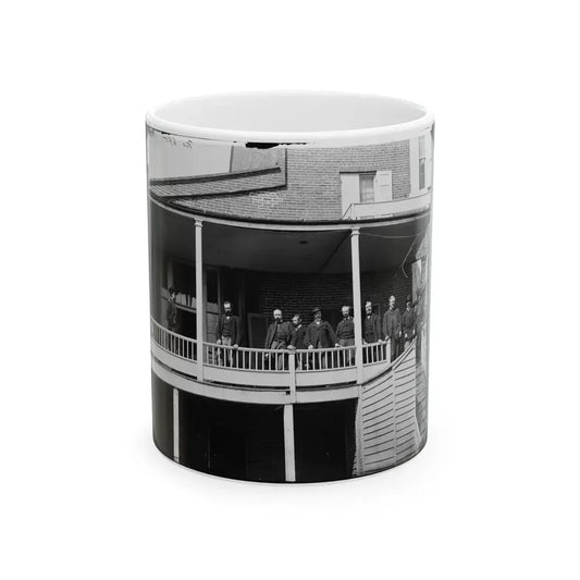Washington, D.C. Officers And Clerks On A Porch At Signal Corps Headquarters (U.S. Civil War) White Coffee Mug