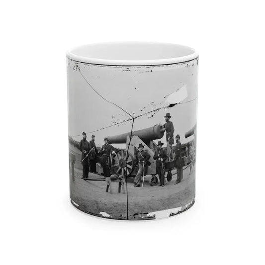 Washington, D.C., Vicinity. Seven Officers By A Big Gun In A Fort (U.S. Civil War) White Coffee Mug