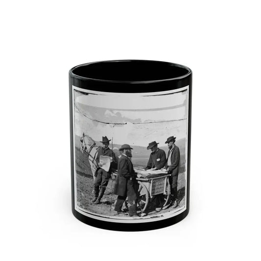 Virginia. Newspaper Vendor And Cart In Camp (U.S. Civil War) Black Coffee Mug