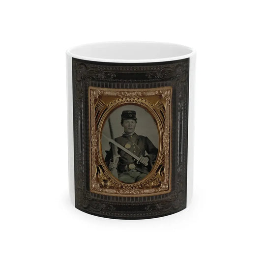 Unidentified Soldier In Union Uniform With Bayonet, Scabbard, And Cap Box (U.S. Civil War) White Coffee Mug