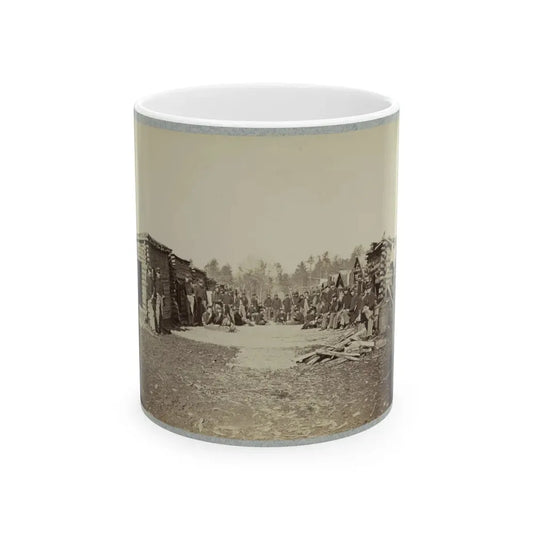 Union Soldiers, In Camp, Posed In Front Of Log Buildings (U.S. Civil War) White Coffee Mug