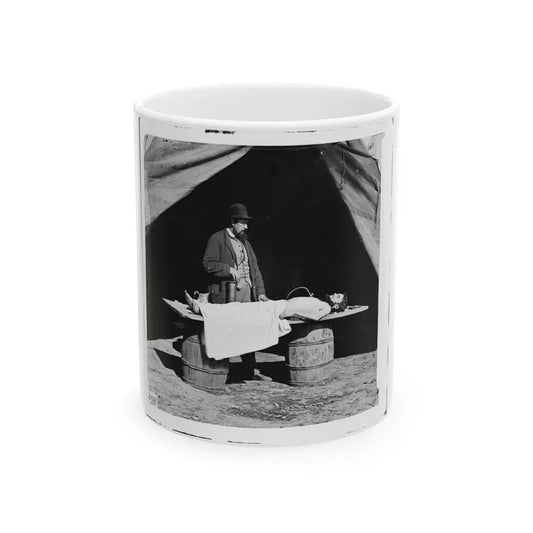 Unknown Location. Embalming Surgeon At Work On Soldier's Body (U.S. Civil War) White Coffee Mug