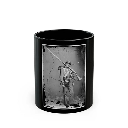 Unknown Location. Unidentified Union Volunteer With Shouldered Rifle And Bayonet In Photographer's Studio (U.S. Civil War) Black Coffee Mug