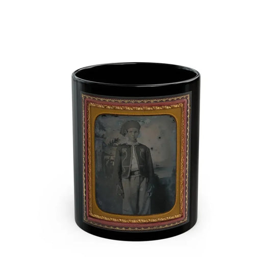 Unidentified Young Soldier In Union Zouave Uniform In Front Of Painted Backdrop Showing A Pavillion At The Edge Of A Lake (U.S. Civil War) Black Coffee Mug