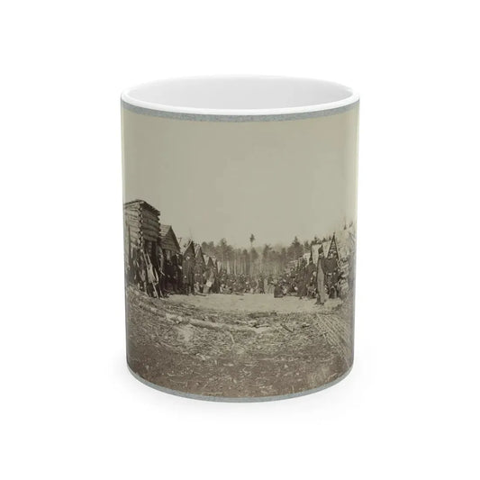 Union Soldiers, In Camp, Posed In Front Of Log Buildings 001 (U.S. Civil War) White Coffee Mug