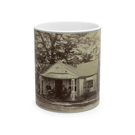 Union Army Soldiers Seated On A Porch With Three Other Men (U.S. Civil War) White Coffee Mug