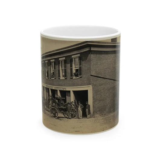 Union Soldiers Pull A Fire Engine From A Garage Designated Petersburg Artillery (U.S. Civil War) White Coffee Mug