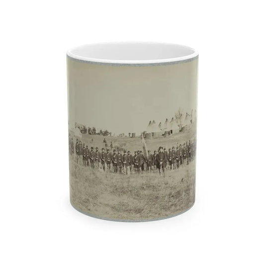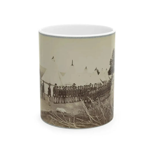 Union Soldiers Lined Up In Two Rows In Front Of Tents (U.S. Civil War) White Coffee Mug