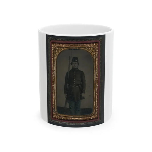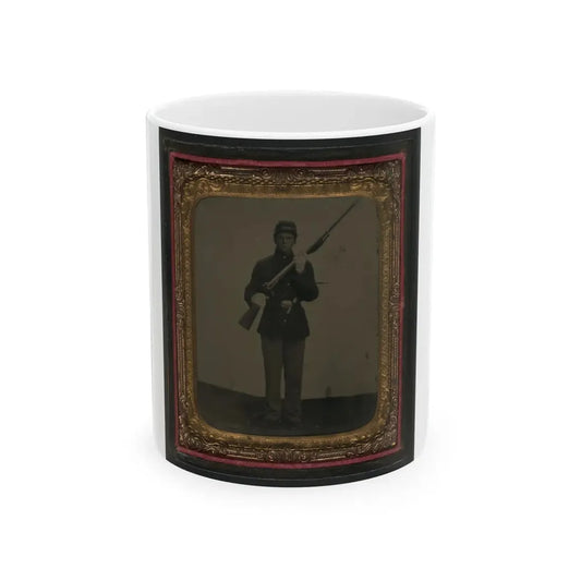 Unidentified Soldier In Union Uniform And Forage Cap With Bayoneted Musket (U.S. Civil War) White Coffee Mug