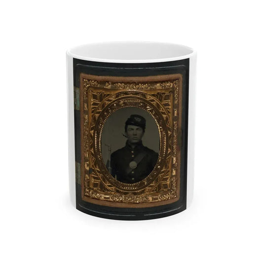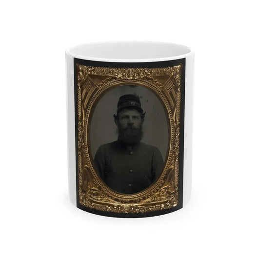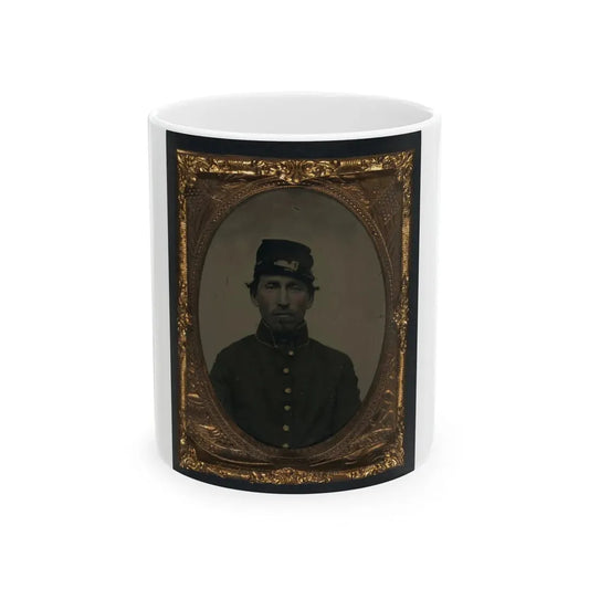 Unidentified Soldier In Union Uniform And Forage Cap With Infantry Insignia And 2nd Corps Army Of The Potomac Badge (U.S. Civil War) White Coffee Mug