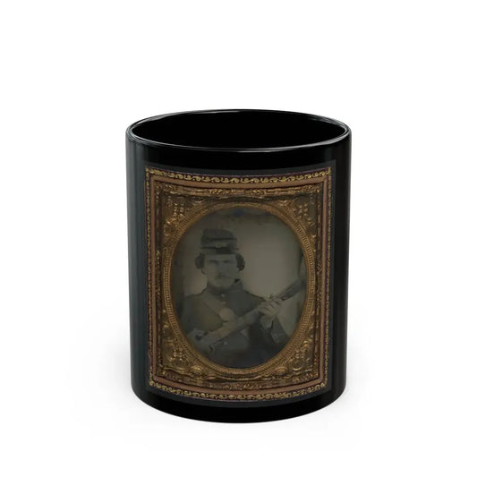 Unidentified Soldier In Union Uniform And Forage Cap With Musket 001 (U.S. Civil War) Black Coffee Mug