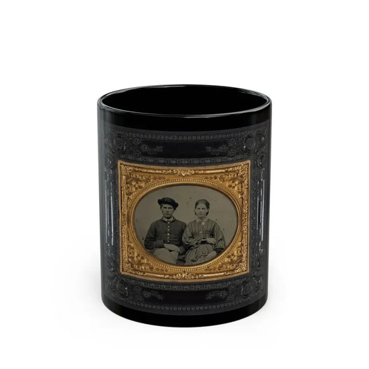 Unidentified Soldier In Union Uniform And Hat And Unidentified Woman In Patterned Dress (U.S. Civil War) Black Coffee Mug