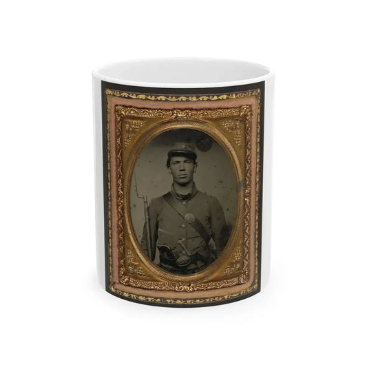 Unidentified Soldier In Union Uniform And Eagle Breast Plate With Bayoneted Musket, Cap Box, And Bayonet Scabbard (U.S. Civil War) White Coffee Mug