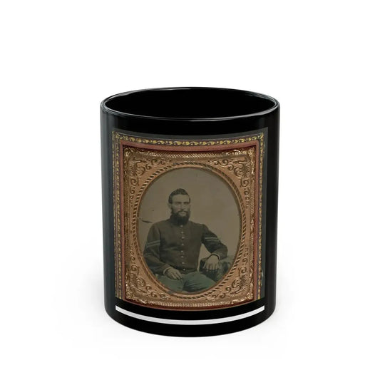Unidentified Soldier In Union Infantry Corporal's Uniform Sitting With Arm Resting On Table (U.S. Civil War) Black Coffee Mug