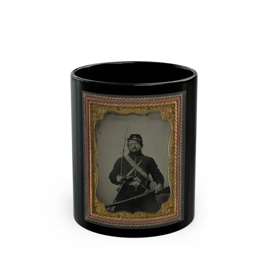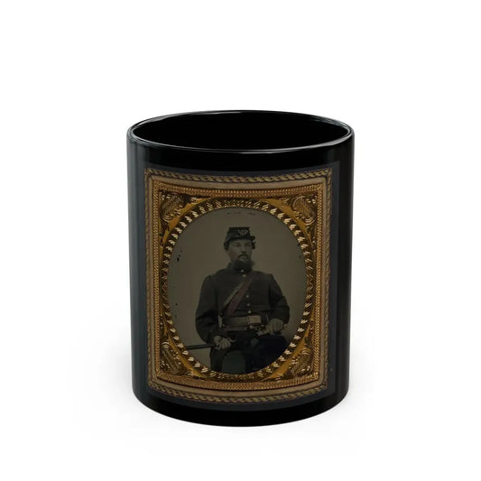 Unidentified Soldier In Union Uniform And 4th Infantry Kepi With Field And Staff Officers Sword (U.S. Civil War) Black Coffee Mug