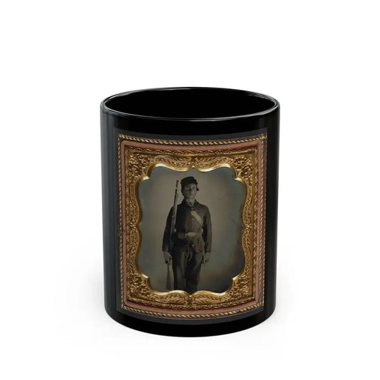 Unidentified Soldier In Union Infantry Uniform And State Of New York Beltplate With Musket (U.S. Civil War) Black Coffee Mug