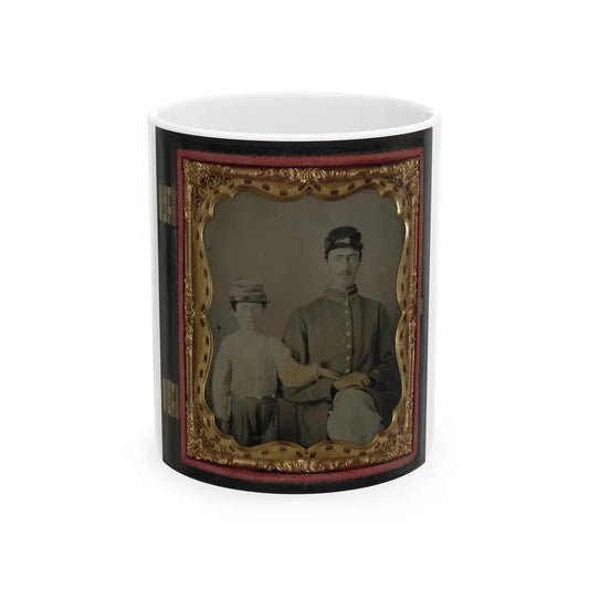 Unidentified Soldier In Union Uniform And Kepi With Unidentified Young Boy, Probably Father And Son (U.S. Civil War) White Coffee Mug