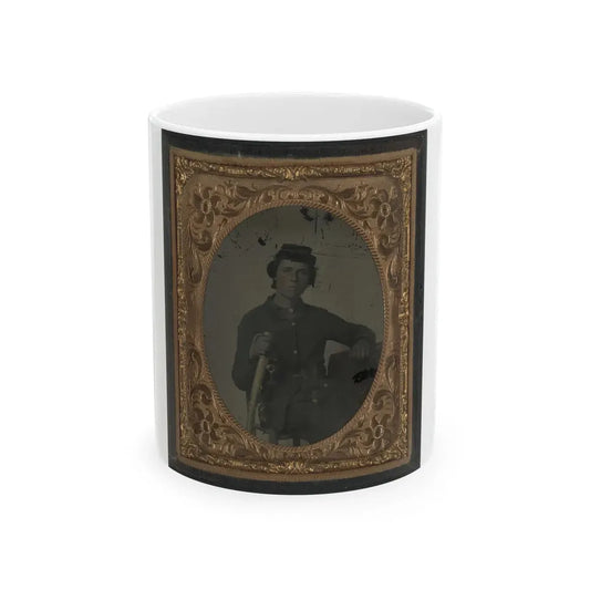 Unidentified Soldier In Confederate Uniform And Craig's Rifles, Or 28th Virginia Infantry Regiment, Kepi With Musket (U.S. Civil War) White Coffee Mug