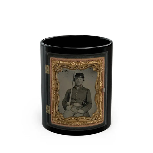 Unidentified Soldier In Confederate Uniform And Snake Belt Buckle With Enfield Rifle And Saber Bayonet (U.S. Civil War) Black Coffee Mug