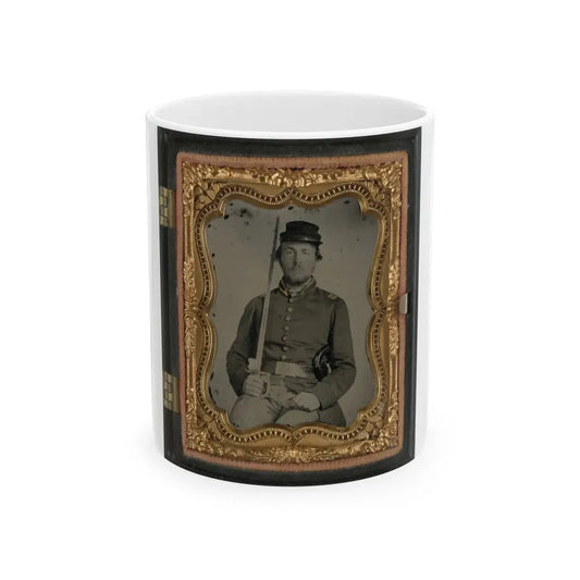 Unidentified Soldier In Confederate Uniform And Snake Belt Buckle With Enfield Rifle And Saber Bayonet (U.S. Civil War) White Coffee Mug