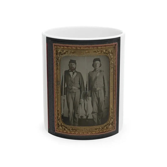 Two Unidentified Soldiers In Union Uniforms Holding Muskets (U.S. Civil War) White Coffee Mug