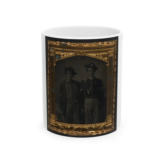 Two Unidentified Soldiers In Union Uniforms And Slouch Hats In Front Of Painted Backdrop (U.S. Civil War) White Coffee Mug