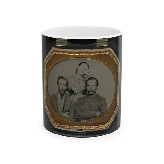 Two Unidentified Soldiers In Union Uniforms With Unidentified Woman (U.S. Civil War) White Coffee Mug