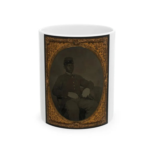 Seated Black Soldier, Frock Coat, Gloves, Kepi (U.S. Civil War) White Coffee Mug