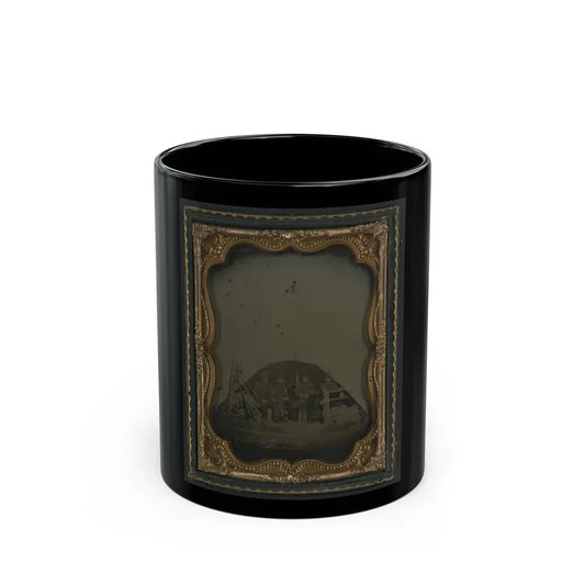 Three Unidentified Soldiers In Union Uniform In Front Of Painted Military Camp Scene Backdrop (U.S. Civil War) Black Coffee Mug