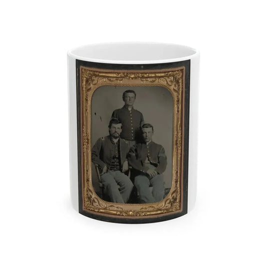 Three Unidentified Soldiers In Union 1st Lieutenant, 1st Sergeant, And Master Sergeant Uniforms (U.S. Civil War) White Coffee Mug