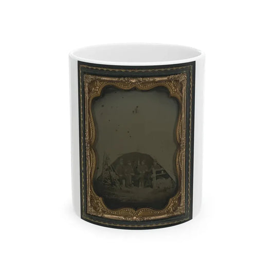 Three Unidentified Officers And A 1st Sergeant Of The 7th New Hampshire Infantry Regiment In Front Of A Sibley Tent (U.S. Civil War) White Coffee Mug