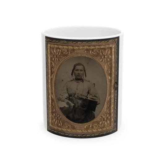 Sabria Clack With Cased Photograph Of Her Husband, Private W.R. Clack, Of Co. B, 43rd Tennessee Infantry Regiment (U.S. Civil War) White Coffee Mug