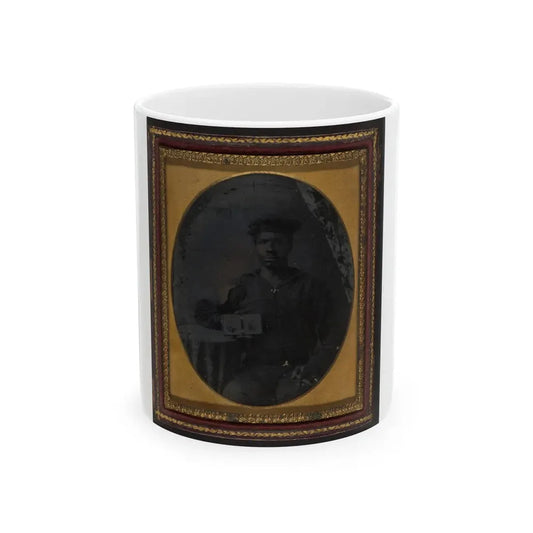 Sailor With Cigar In Hand Holding A Double Case Image Of Confederate Soldiers (U.S. Civil War) White Coffee Mug