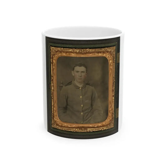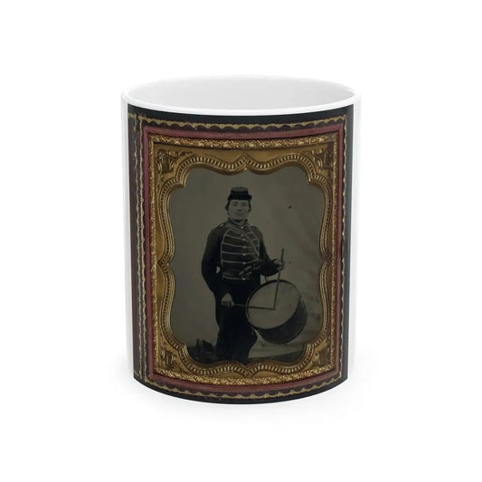 Private William V. Haines Of Company H, 49th Ohio Infantry Regiment, In Uniform And Ohio Volunteer Militia Belt Buckle With Drum (U.S. Civil War) White Coffee Mug