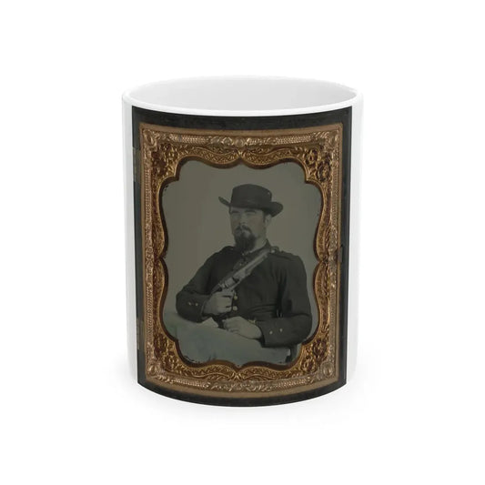 Private William B. Todd Of Company E, 9th Virginia Cavalry Regiment With Colt Army Revolver And Smoking A Cigar (U.S. Civil War) White Coffee Mug
