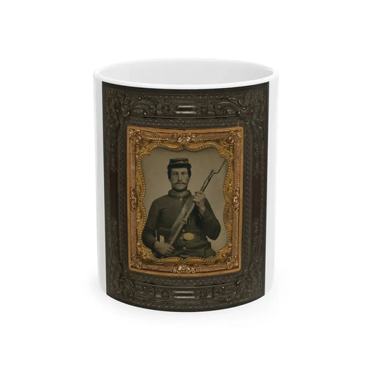 Private William F. Bower Of Company D, 21st Ohio Regiment Infantry Volunteers, With Bayoneted Musket (U.S. Civil War) White Coffee Mug