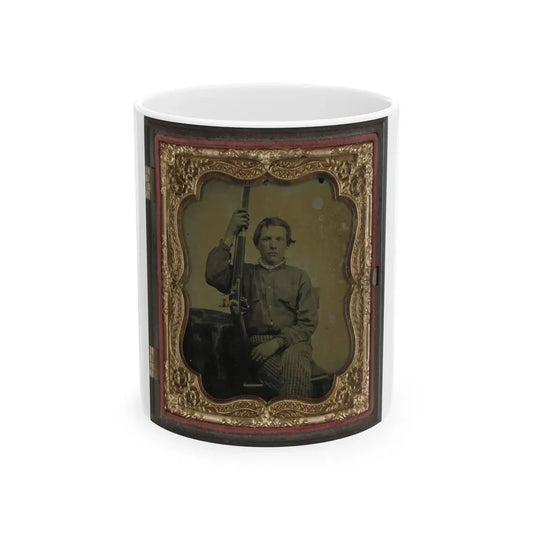 Private William H. Presgraves Of Company K, 97th Militia Virginia Infantry Regiment, With Rifle (U.S. Civil War) White Coffee Mug
