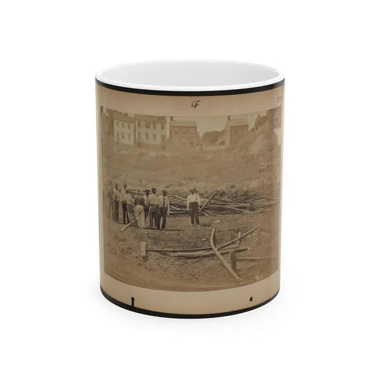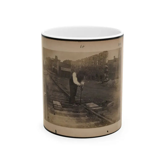 Railroad Construction Worker Straightening Track; Pile Of Twisted Rails In Background. 1862-63 (U.S. Civil War) White Coffee Mug