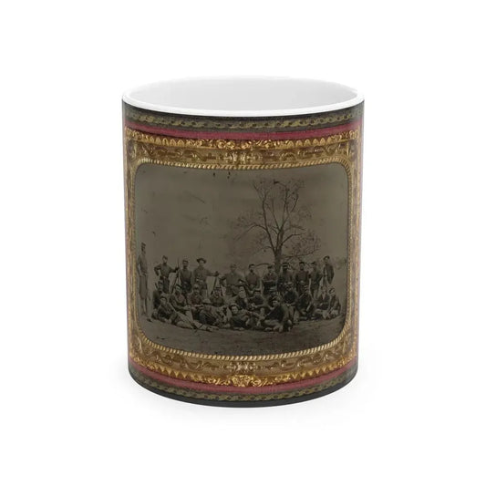 Group Of 26 Unidentified Soldiers In Union Uniforms With Stacked Bayoneted Muskets In Front Of Tree (U.S. Civil War) White Coffee Mug
