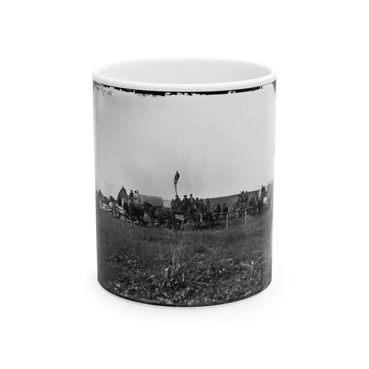 Brandy Station, Va. Wagons And Men Of The U.S. Military Telegraph Construction Corps (U.S. Civil War) White Coffee Mug