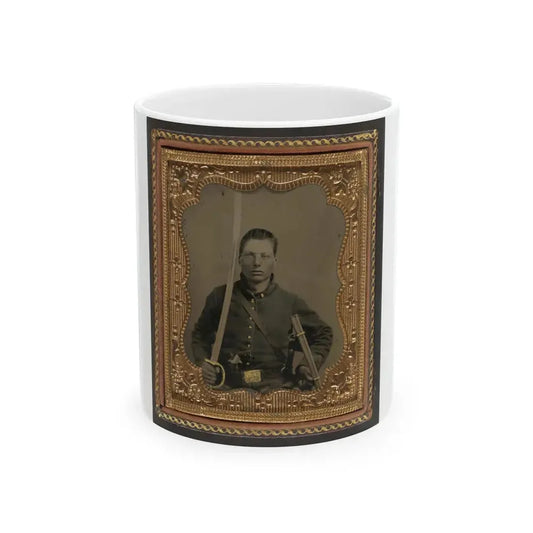 Elias Teeple In Union Uniform With Saber And Smith And Wesson Revolver (U.S. Civil War) White Coffee Mug