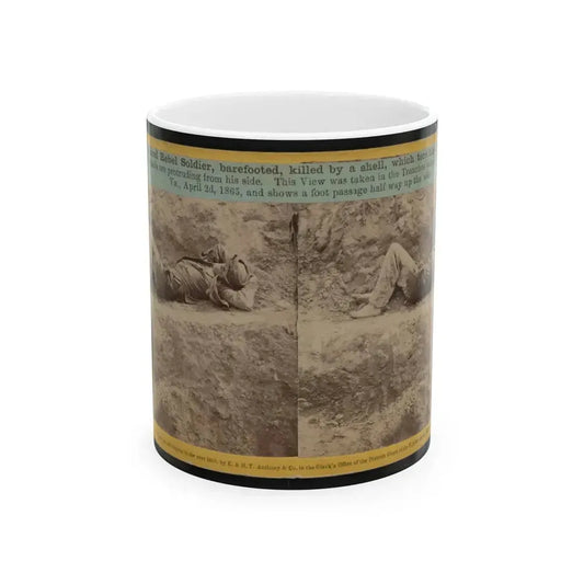 A Dead Rebel Soldier, Barefooted, Killed By A Shell, Which Tore His Side Out. The Entrails Are Portruding From His Side (U.S. Civil War) White Coffee Mug
