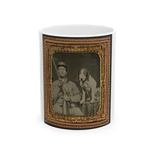 Unidentified Soldier In Confederate Uniform With Shotgun Sitting Next To Dog (U.S. Civil War) White Coffee Mug